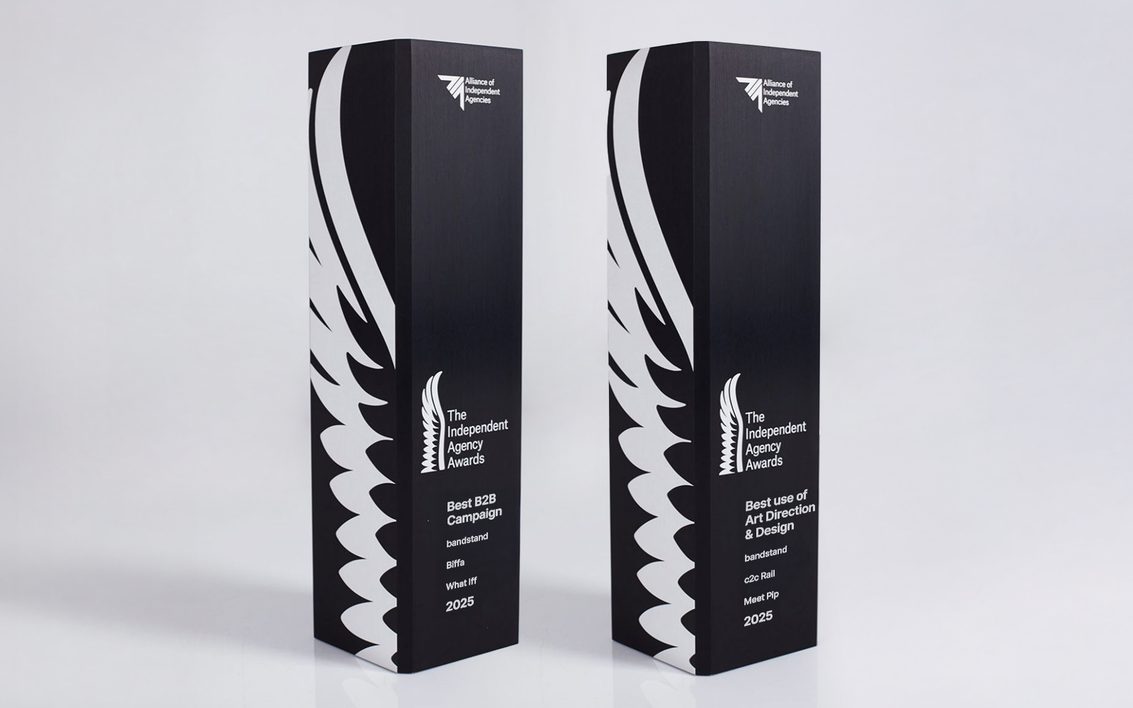 bandstand scooped up two shiny (and surprisingly heavy) gongs at the 2025 Independent Agencies Awards for our work on c2c and Biffa, in the Best Design & Art Direction and Best B2B campaign categories.