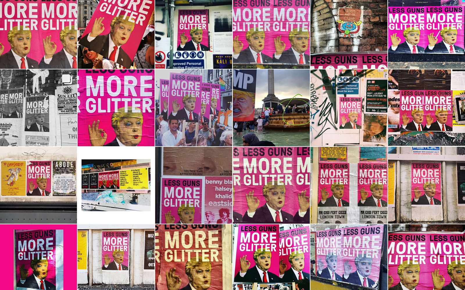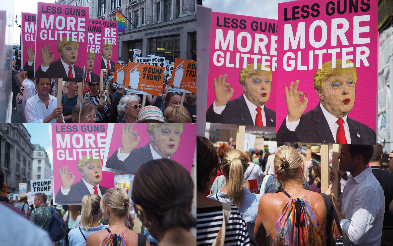 Normally, we don’t get political. But when Donald Trump dropped by, we had to make an exception. Our gloriously glittering rendition of the 45th President of the United States appeared up and down the streets of London – from Soho to Shoreditch. And we were only too proud to march our placards down Regent Street in protest of the tangerine tyrant’s arrival. (Yes, we know it’s “fewer guns”.)