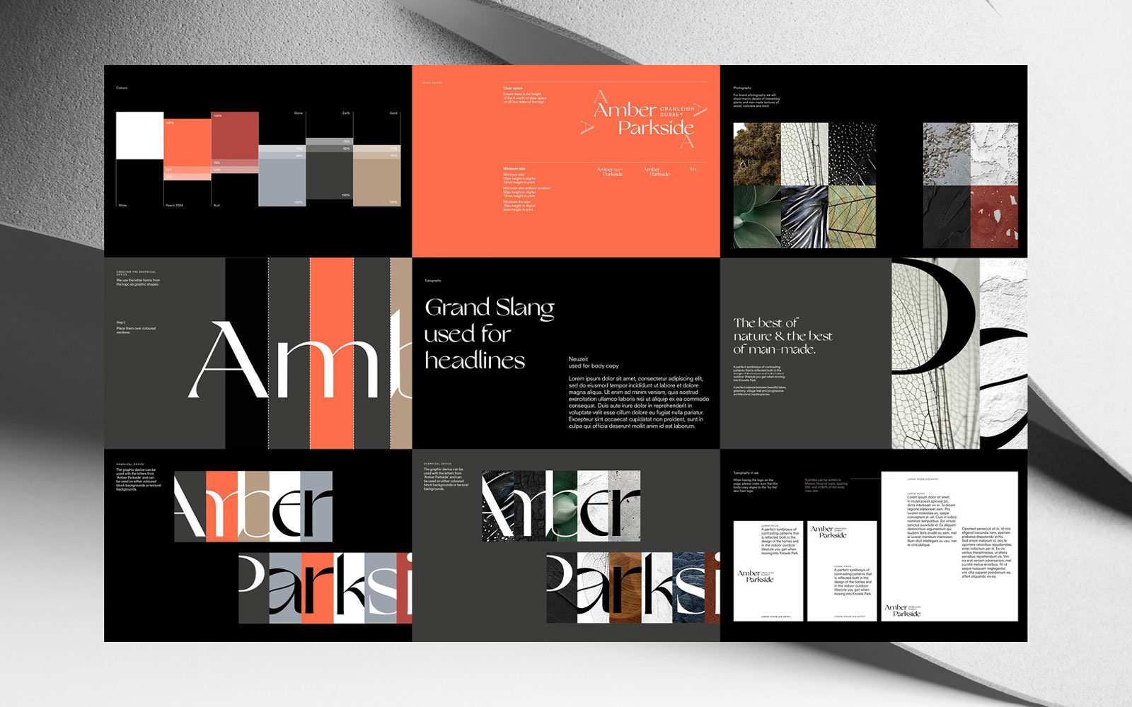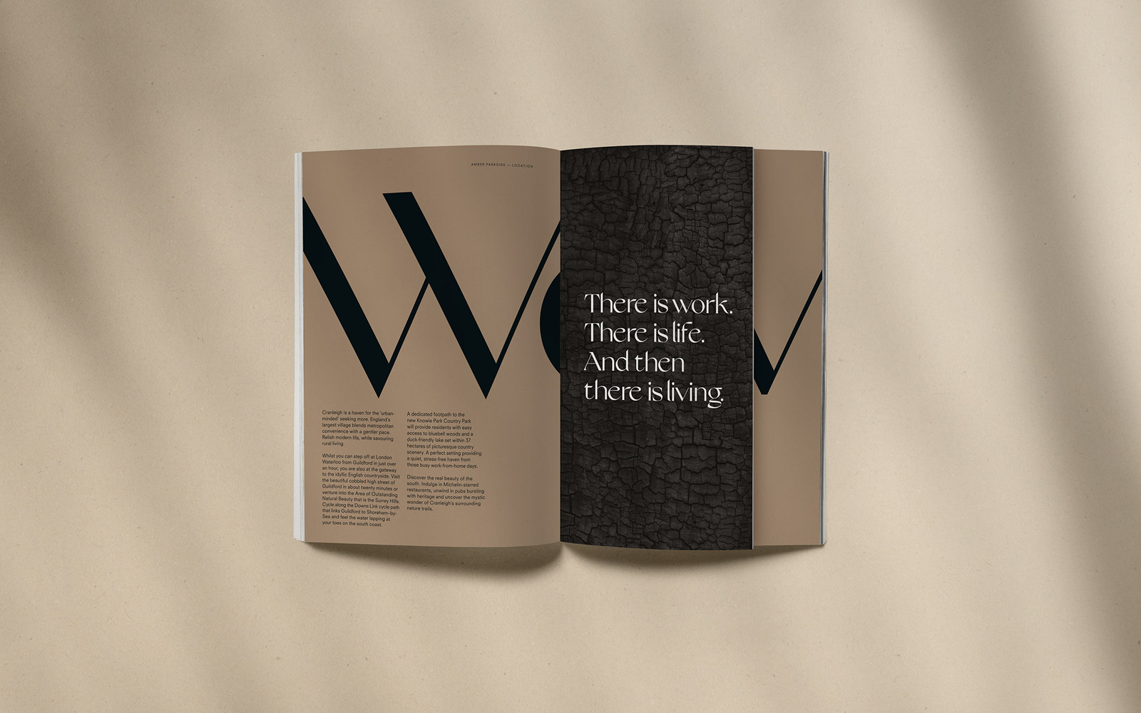 Amber Parkside is a stylish neighbourhood in Surrey looking to stand out from the crowd through its Scandi-meets-New-England architecture and design-led interiors. Our visual identity drew on the colours and materials of Fabrica’s development and the surrounding scenery, with copy throughout focussing on its ambitious design and distinctive offering.