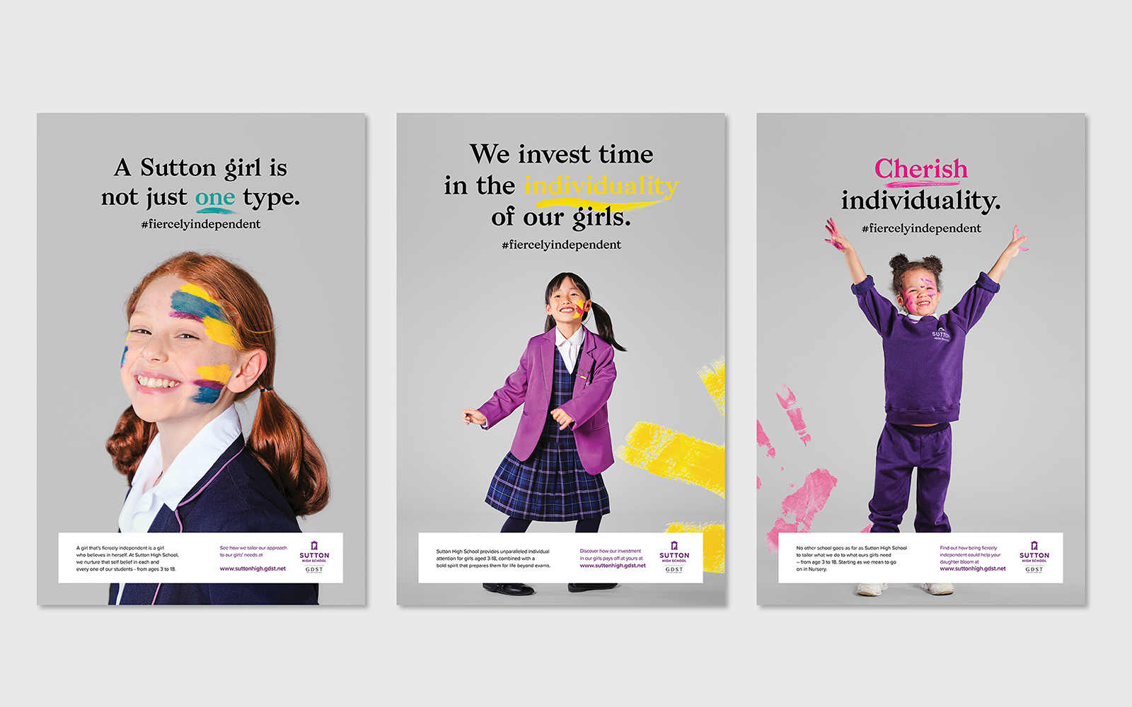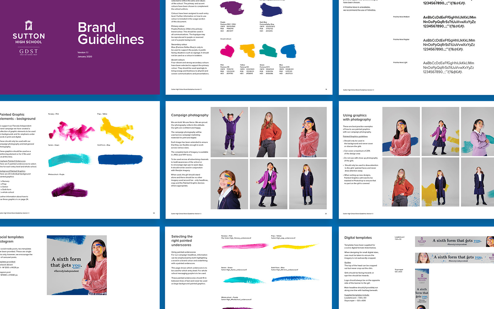 bandstand additionally created a brand toolkit which comprised different elements, including headlines, images and design templates for advertising. They were captured in a comprehensive set of guidelines so that GDST Sutton could adhere to the brand identity when pushing out their own comms.