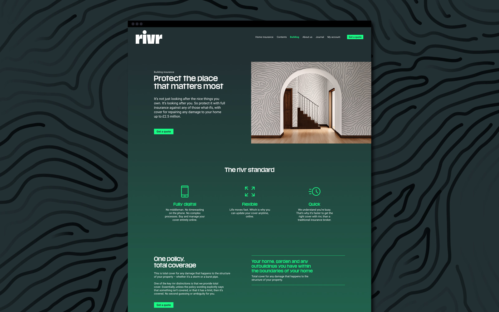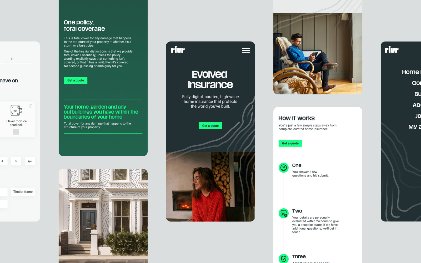 rivr, the UK’s first, fully-digital, high-value home insurance platform was ready to be launched into the big, wide world. We worked closely with Will, the brains behind it all, to create a brand identity that reflected how modern and disruptive this product truly was. The result? A slick and tech-inspired visual language that was both accessible and inspiring, nodding to the premium nature of the brand without being exclusionary.