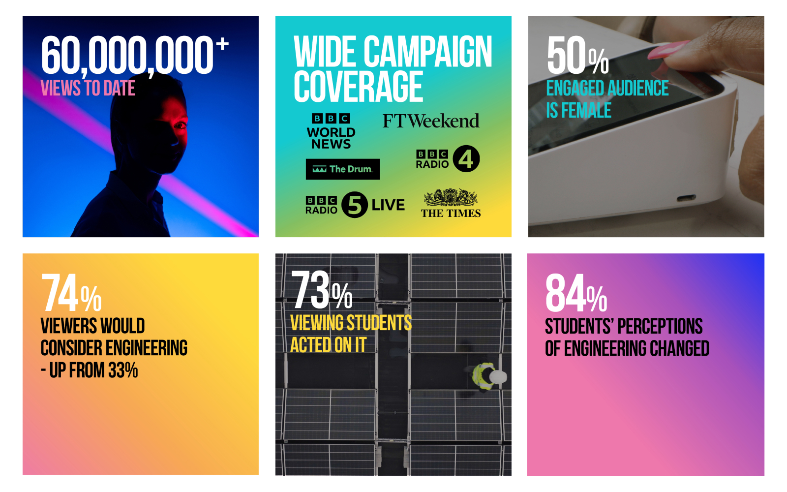 After several years of consistent success, and listening to key research insights, the focus of the campaign shifted in order to align with the changing priorities of our up-and-coming target audience: switching from “wow I never knew that was engineering” to the positive impact of engineering and its role in shaping a better future for the planet and people.